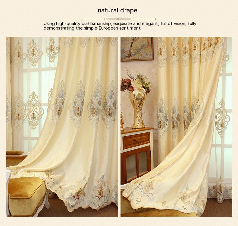 Crown European Embroidery Cloth Mesh Curtains Living Room Bedroom Simple