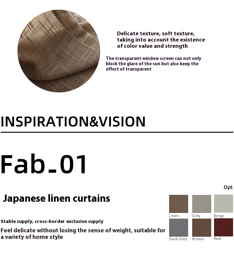 Color: linen, light gray, light beige, dark gray, brown, red