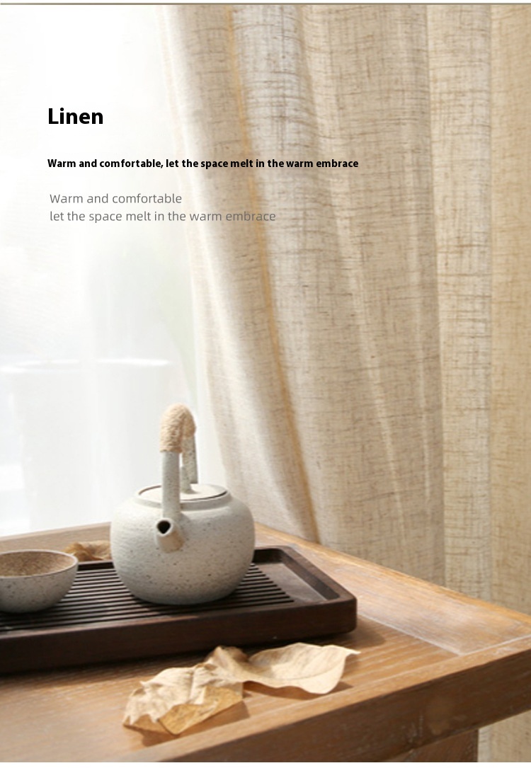 • Japanese Linen Half Shade Curtain Solid Color Balcony Bedroom Living Room