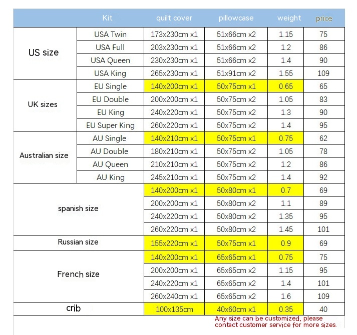 Size specifications: 135*200 (two-piece set),140*210 (two-piece set),173*218 (two-piece set),180*210 (three-piece set),200*200 (three-piece set),210*210 (three-piece set),240*210 (three-piece set),240*220 (three-piece set),200*220 (three-piece set),200*230 (three-piece set),228*228 (three-piece set),264*228 (three-piece set),260*220 (three-piece set),260*240 (three-piece set), more more sizes