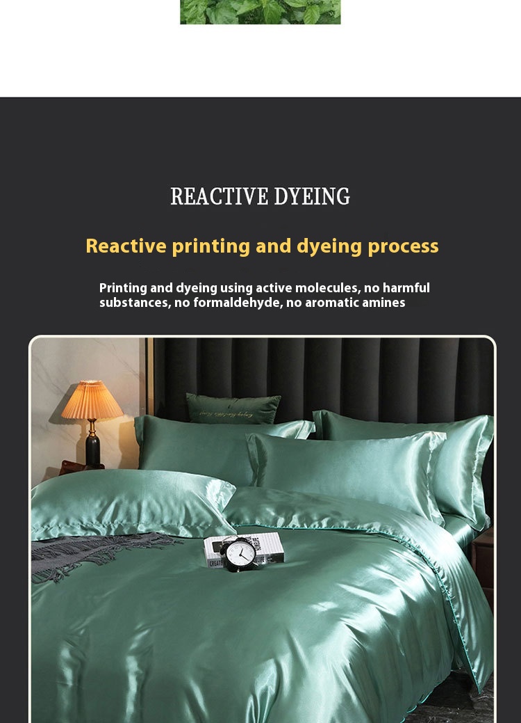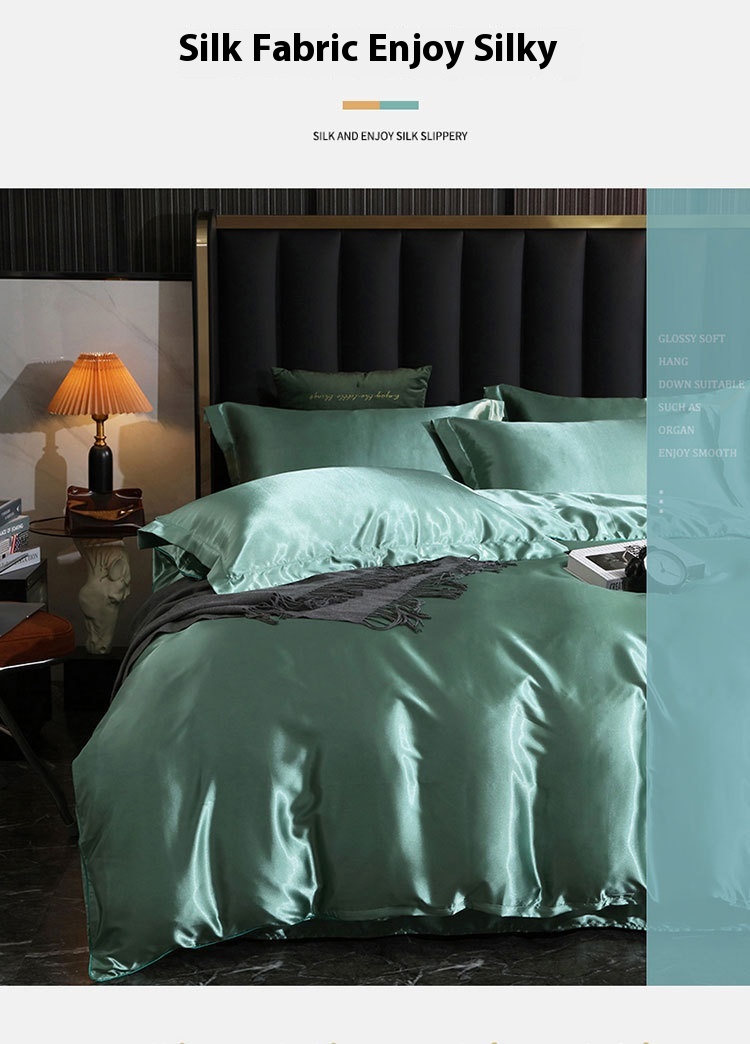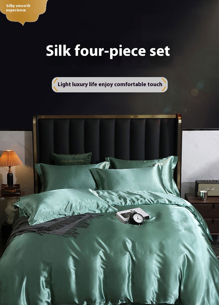 • Solid Color Double-sided Silk Four-piece Set Silkworm Silk Satin Bed Sheet Quilt Cover